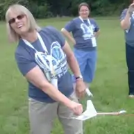 Do you want the kids to ENJOY going outside and playing a game? This is how it happens. Similar to another youth group game where you make cars from wood, the object is to stay in the air the longest.