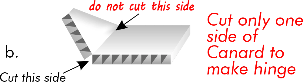 With a pair of scissors cut along the diagonal lines. Remove and save the smaller pieces for the vertical stab and canard.
