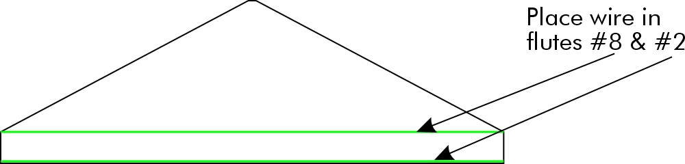 Insert two 18” pieces of wire in the wing flutes #2 and #8, counting from the trailing edge of the wing. Cut the wire to ensure the wire will not to extend past the wing.